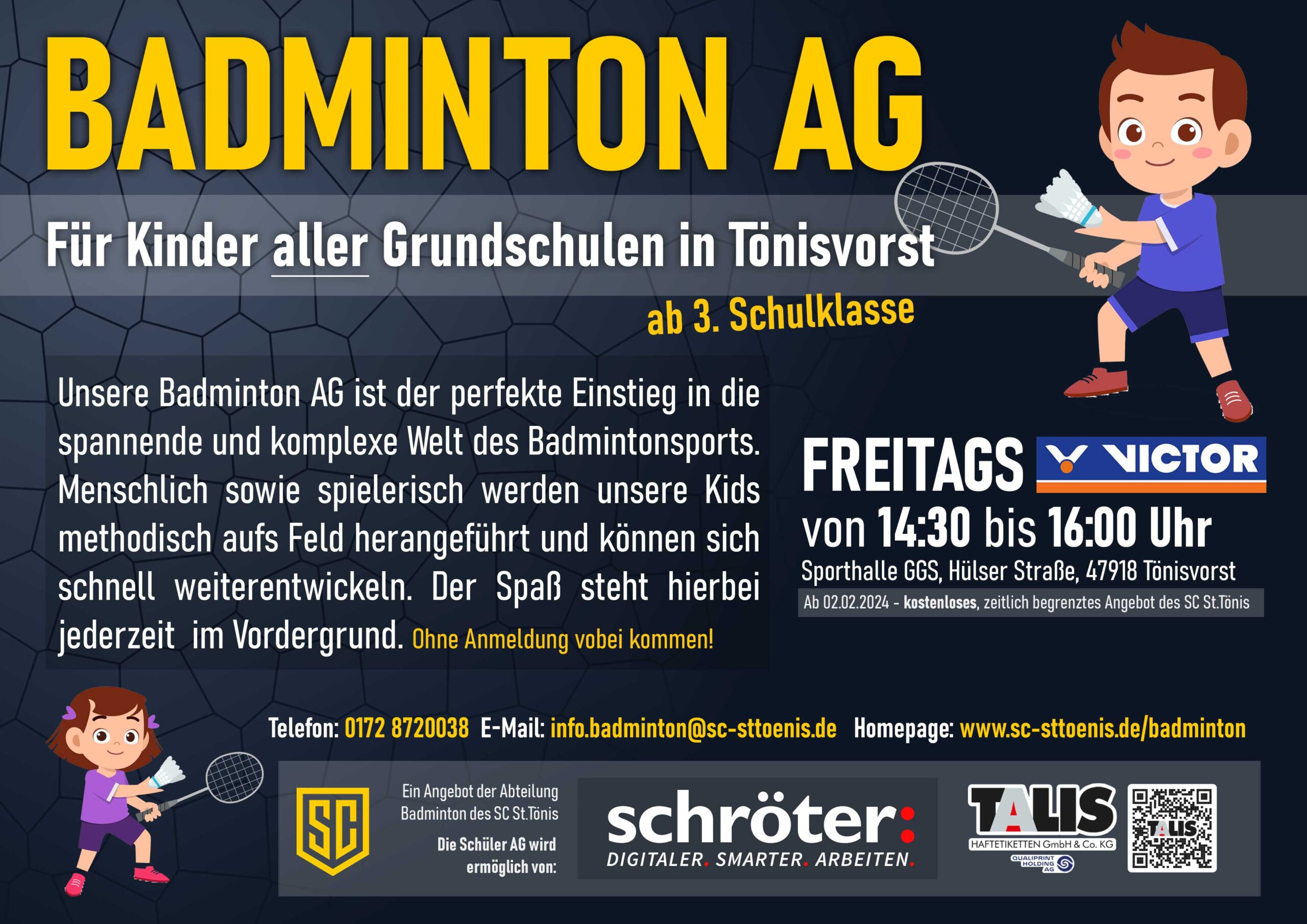 Unsere Badminton AG ist der perfekte Einstieg in die spannende und komplexe Welt des Badmintonsports. Menschlich sowie spielerisch werden unsere Kids methodisch aufs Feld herangeführt und können sich schnell weiterentwickeln. Der Spaß steht hierbei jederzeit im Vordergrund.